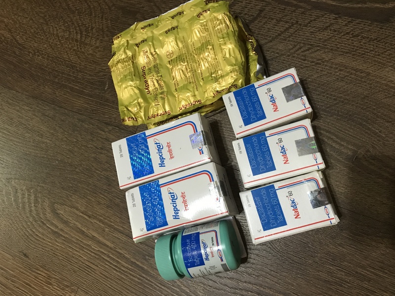 Единственный нюанс, заказывал курс по акции Resof+Hepcdac 499$ 12недель а положили в посылку Virso+Hepcdac 12недель и бонус витамины "Супрадин" 6упаковок по 15 таблеток.