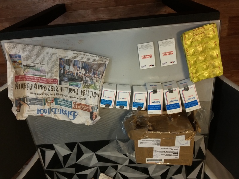 При вскрытии коробки были согласно заказу 3 баночки Virpas Софосбувир + Ледипасвир (у меня гепатит С 1 генотип) и витамины 6 пластин Супрадина (очень приятно, витамины я люблю). Начала проверять соответствие цифр на коробках и банках, совпало.